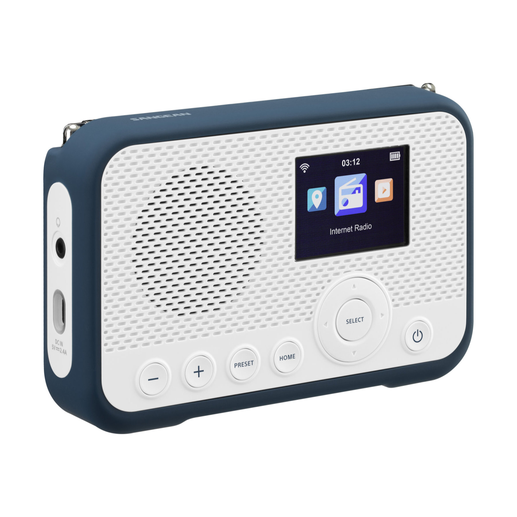 Ervaar de Sangean WFR-39 - Wit-blauw, een DAB internetradio in een stijlvol wit-blauw ontwerp. Voor de beste digitale radio-ervaring en online streaming, met hoogwaardige geluidskwaliteit en wereldwijde radiostations binnen handbereik.